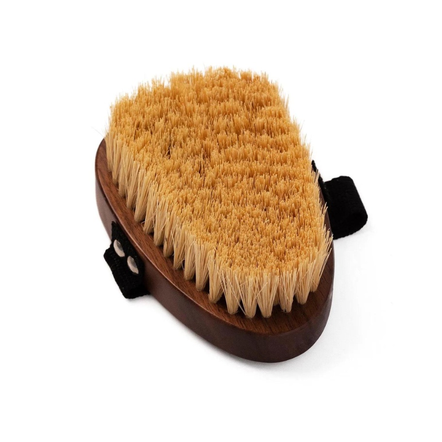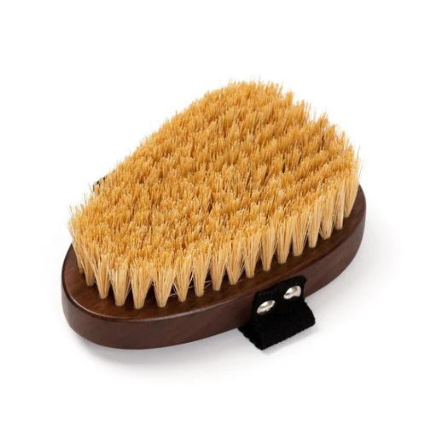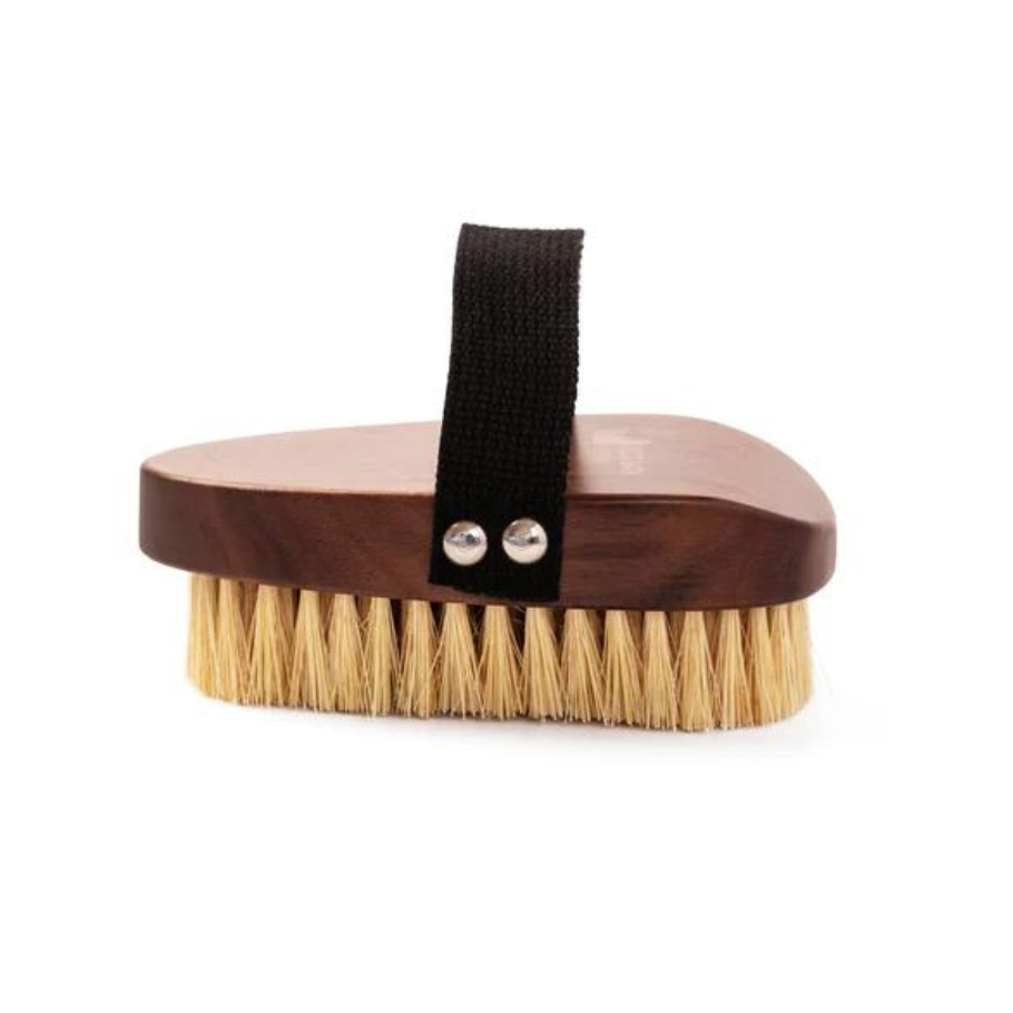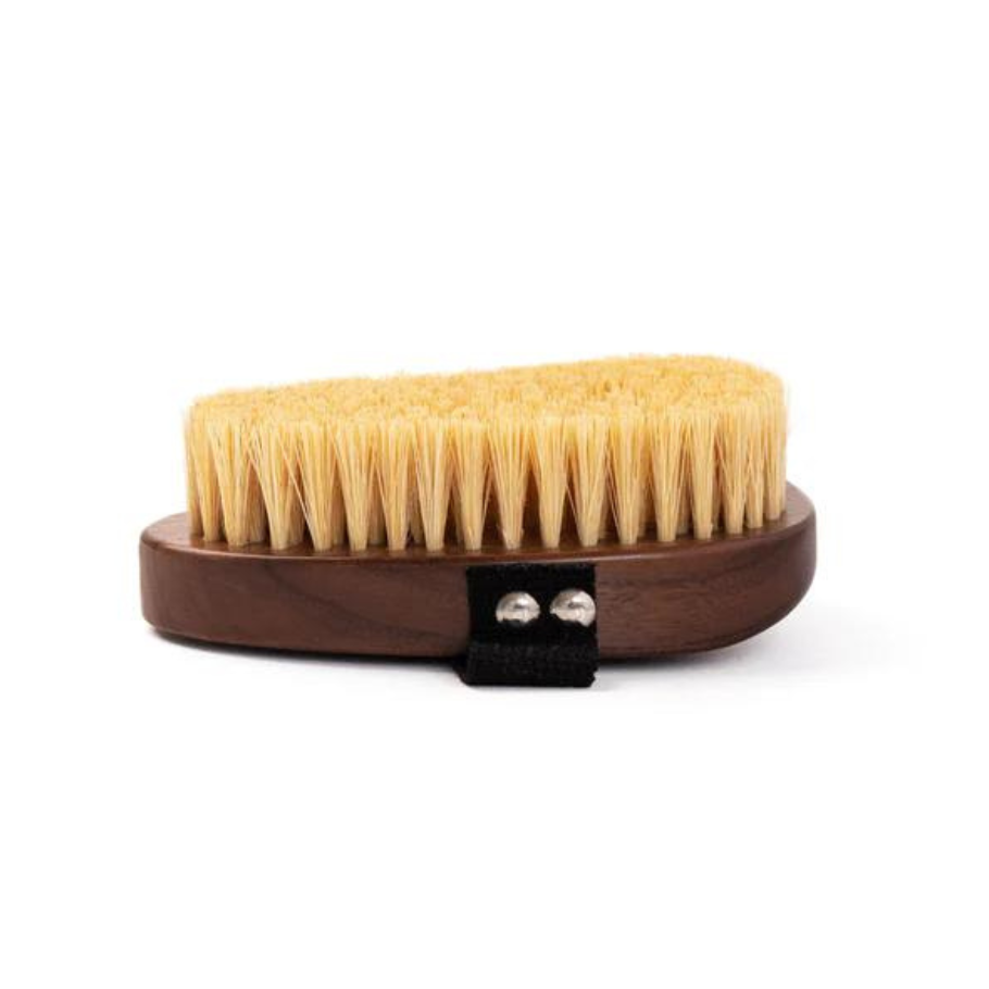Þurrbursti úr valhnetu með sisal burstahárum og ól úr striga til að tryggja betri stjórn.