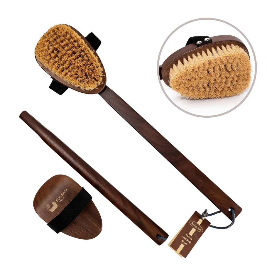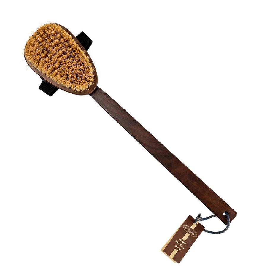 Líkamsbursti á skafti úr valhnotu með sisal hárum.