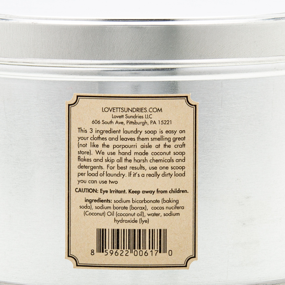Þegar Lovett hjónin byrjuðu að búa til sápur hugsuðu þau með sér, af hverju ekki að búa líka til sápur fyrir fatnað? Flest þvottaefni eru samsett úr alkýlbensensúlfónötum, sem er víst alvöru orð! Í þvottaefnið okkar notum við kókoshnetusápuflögur og borax sem grunn. Borax hefur verið notað til þvotta síðan því var fyrst safnað í eyðimörkum Ameríku á níunda áratug þar síðustu aldar. Þau hugsuðu með sér, fyrst þetta efni þreif fötin þeirra sem byggðu Ameríku, þá hlýtur það að duga í hvað sem er. Það fer vel með fötin þín, hreinsar vel og þú lyktar ekki eins og blómabúð.