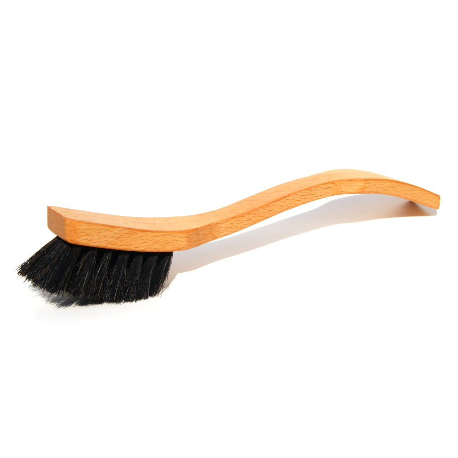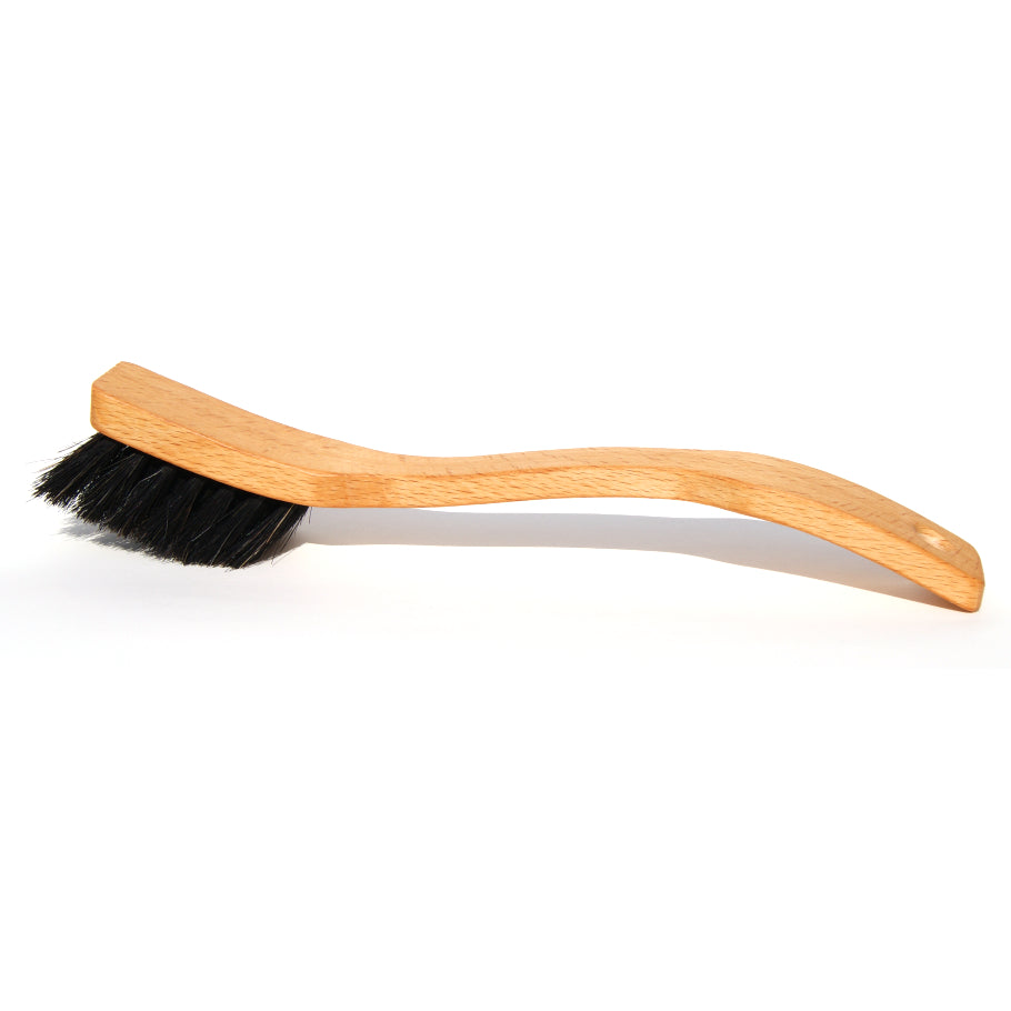 Uppþvottabursti úr olíubornu FSC* beyki og með góðu vinnuvistfræðilegu hönnuðu handfangi. Á enda burstans er skafa til að auðvelda þrif á pottum og pönnum. Burstahárin eru dökk hrosshár.