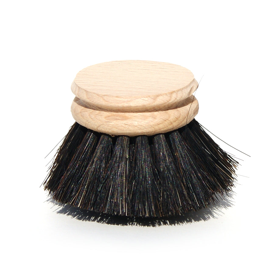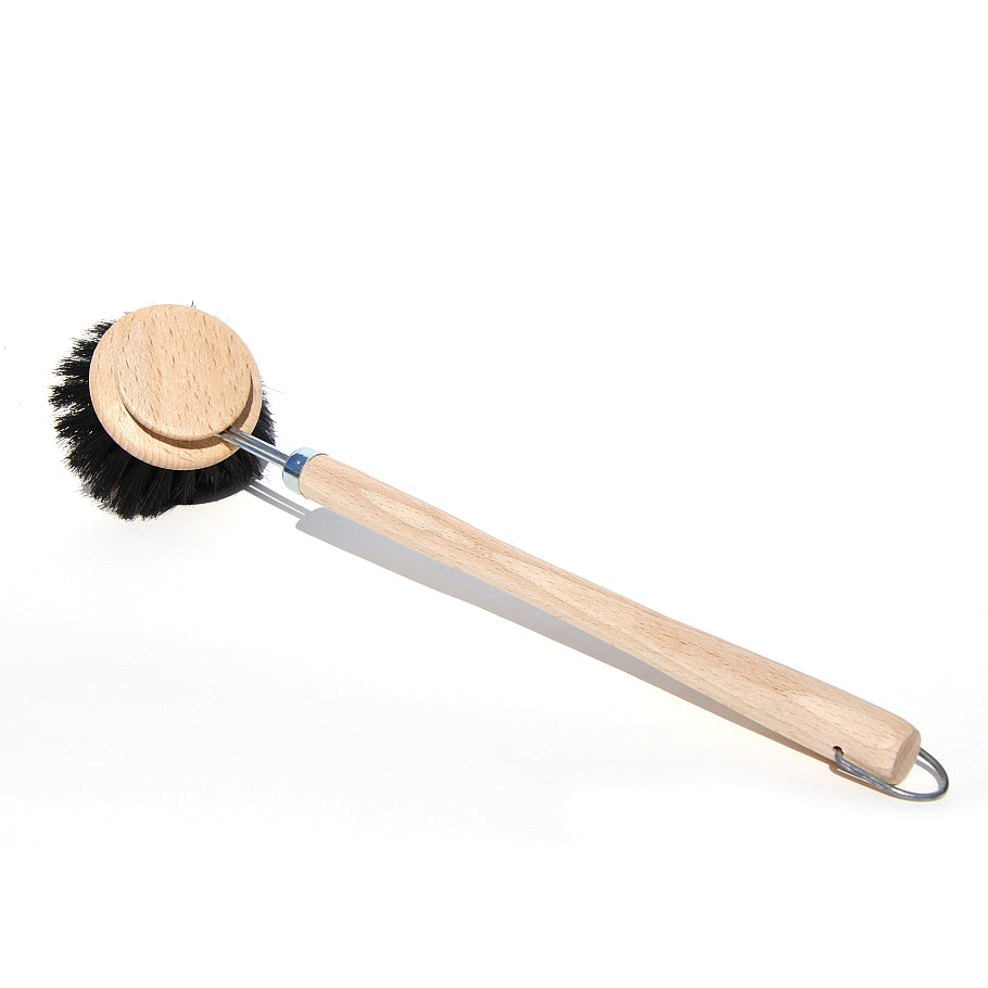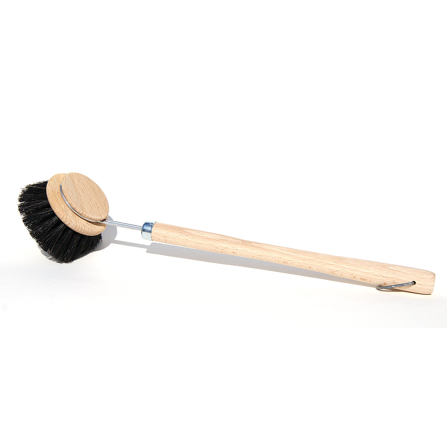 Uppþvottabursti úr ómeðhöndluðu beyki með dökkum hrosshárum. Hægt er að skipta um burstahaus með því að draga járnið úr skaptinu.