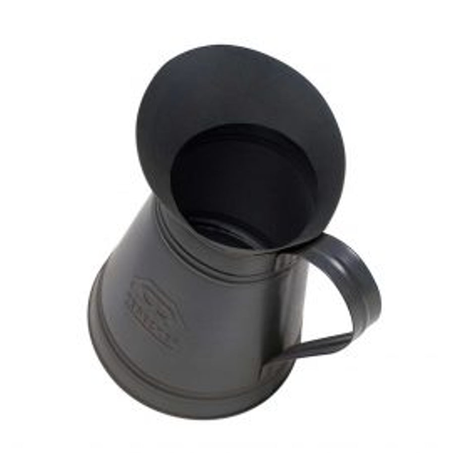 Fallega gamaldags vatnskanna úr svörtum málmi.